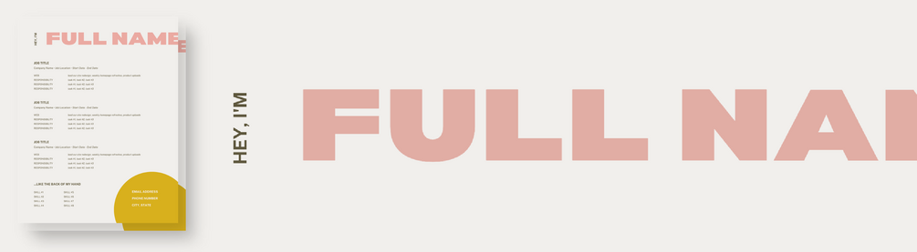 This package includes Canva templates to effortlessly fill out your resume and cover letter, MadLibs style. This is the playful template – a sunny, retro set that still feels refined and professional.